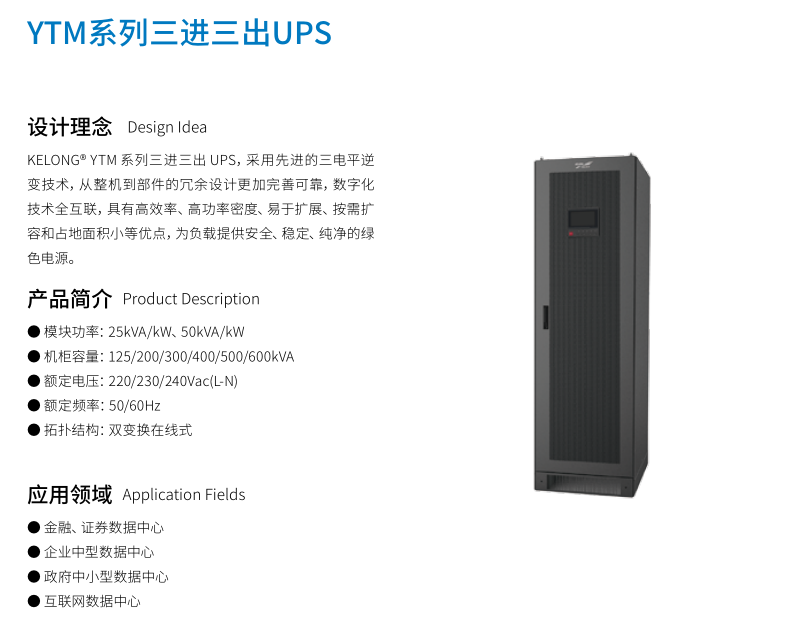 YTM系列三進(jìn)三出UPS 160-800kVA